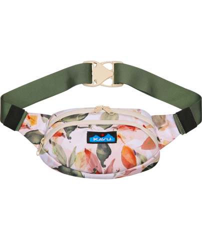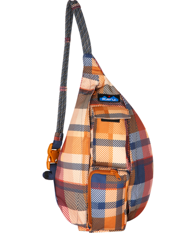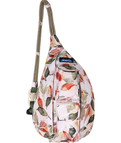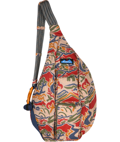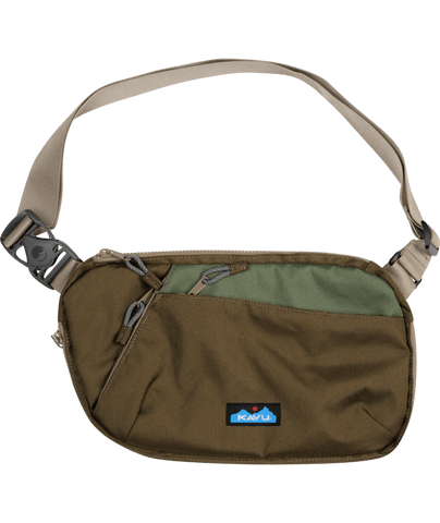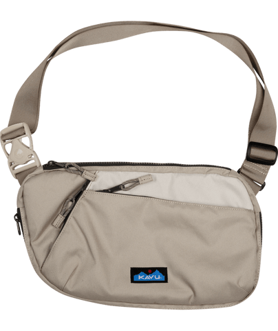 - This cotton canvas sling features an adjustable rope shoulder strap with side release buckle, two vertical zip compartments, two key or cell phone pockets, and a padded back with KAVU embroidery.