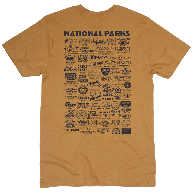Enjoy the splendid diversity of America's National Parks as designed in this original and imaginative typographic tee!