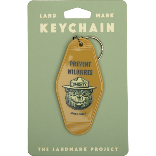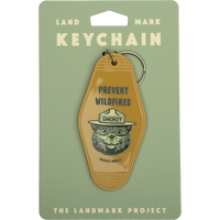 Keep Smokey's message close with this retro-styled keychain featuring everyone's favorite forest guardian. For outdoor adventures and daily commutes alike, this keychain serves as a daily reminder to value and protect our natural spaces by doing our part to prevent unwanted wildfires.