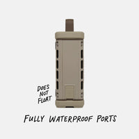 - IP-67 waterproof (fresh & saltwater) and submersible up to the 3 feet for 30 minutes. FYI, it does NOT float.