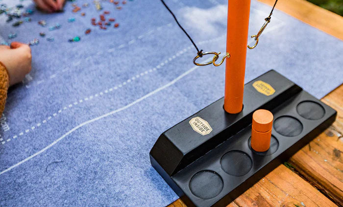 Be the first player to hook your ring 5 times. Keep score with the counter.