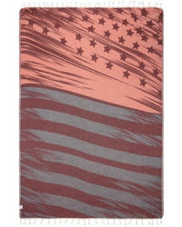 Vintage Inspired American Flag design, made from Turkish organic cotton for a softer hand feel and a better sustainable product, large size, jacquard texture weave, with zipper pocket, twisted tassels, quick dry and sand resistant.